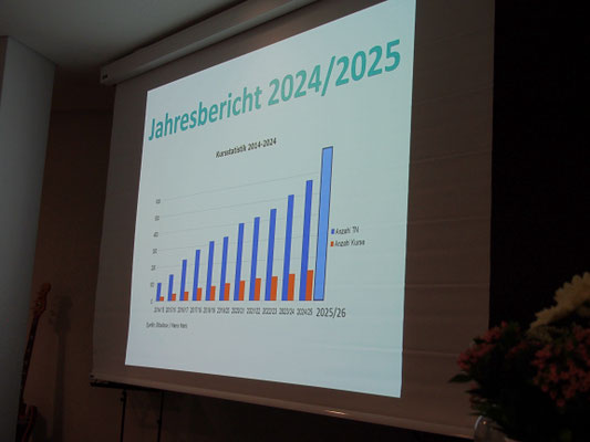 Die Räume werden immer grösser, die Mitgliederzahl steigt stehtig. Auch an der Mitgliederversammlung 2025 konnte die Präsidentin wieder über Erfolgszahlen berichten (siehe unten). Aber im Zentrum standen nicht die Zahlen. Ursula Naef wurde nach 6-jähriger Tätigkeit als Präsidentin mit grossem Dank verabschiedet. Daniel Benninger tritt ihre Nachfolge an. Wahrhaftig viele Gründe um sich von der lüpfigen Musik der Gasserol in Schwung versetzen zu lassen und das reichhaltige Buffet im Anschluss zu geniessen.